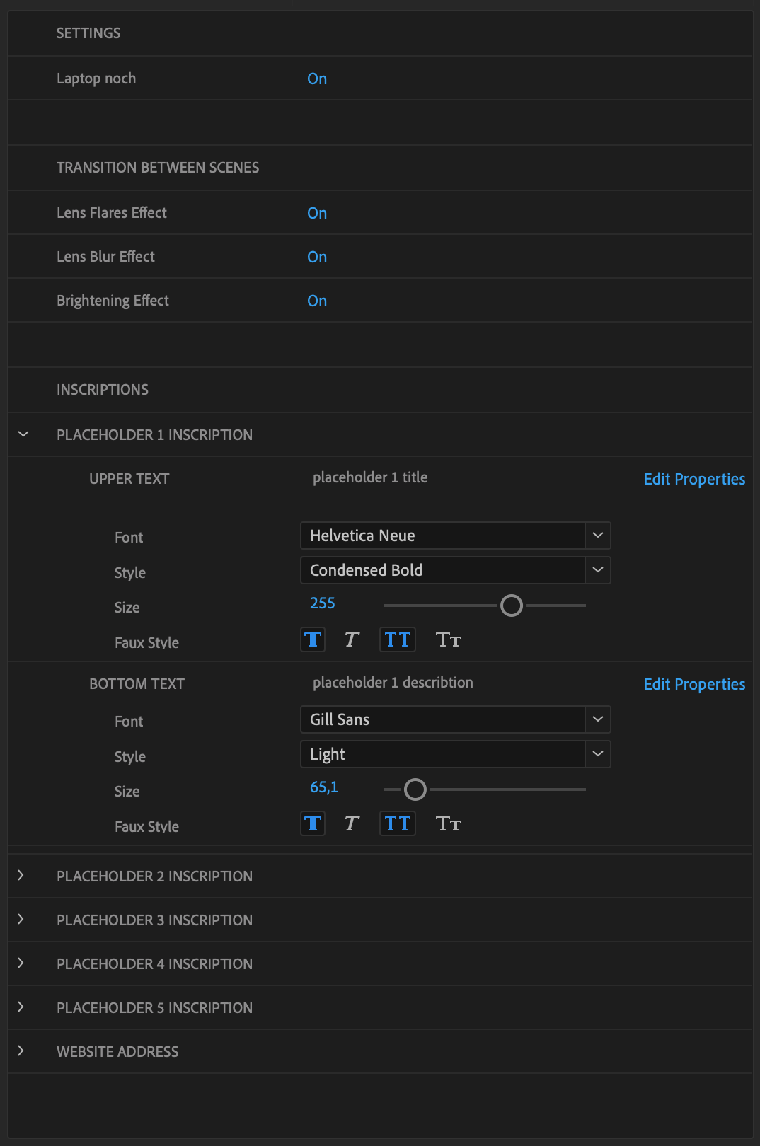 • Control over transition effects, and laptop notch disable/enable ability (easy-to-use toggles in AE “Essential Graphics” panel)