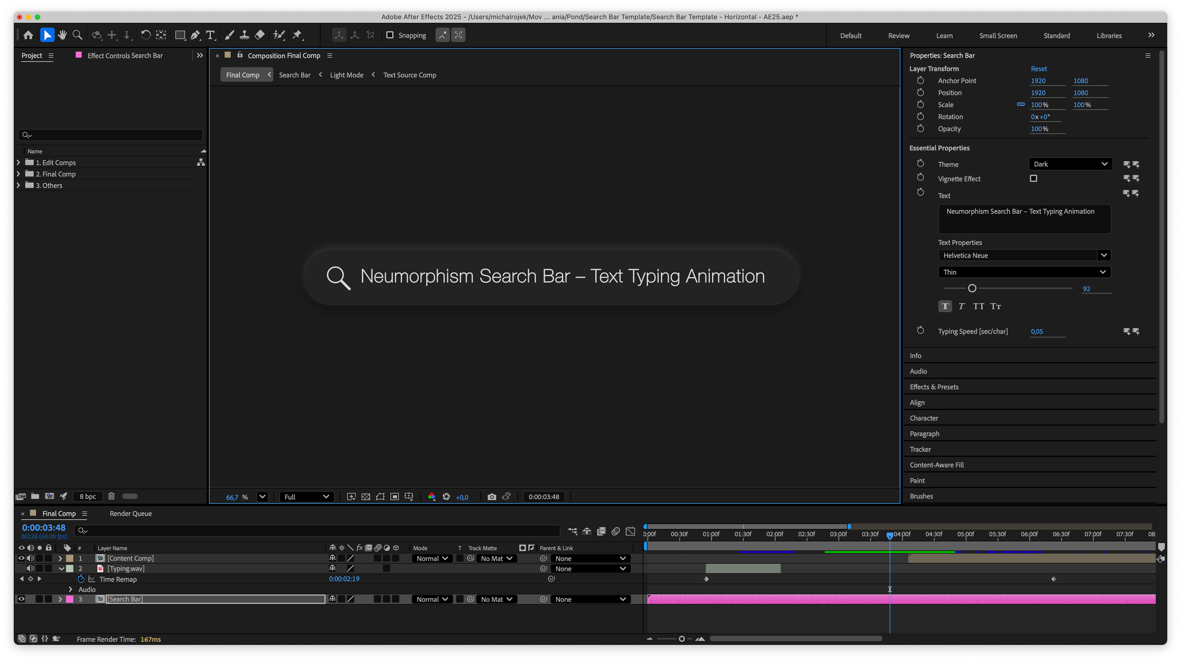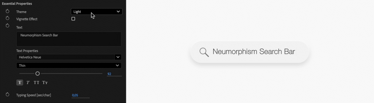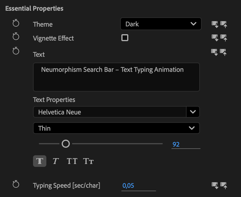 • Typing text animation with adjustable speed (Typing Speed [sec/char] slider).