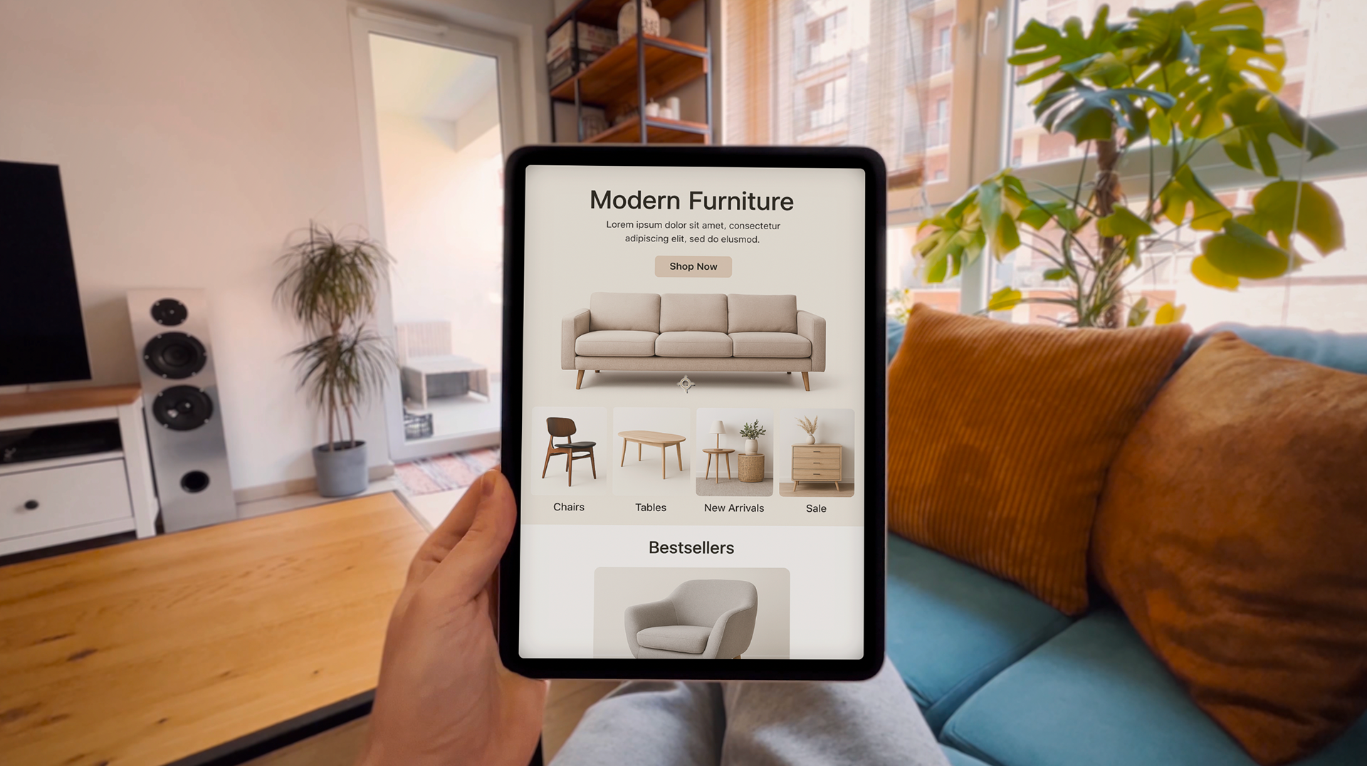 In this scene, a person lifts a tablet, and the screen lights up, perfectly synchronized with your custom content.
